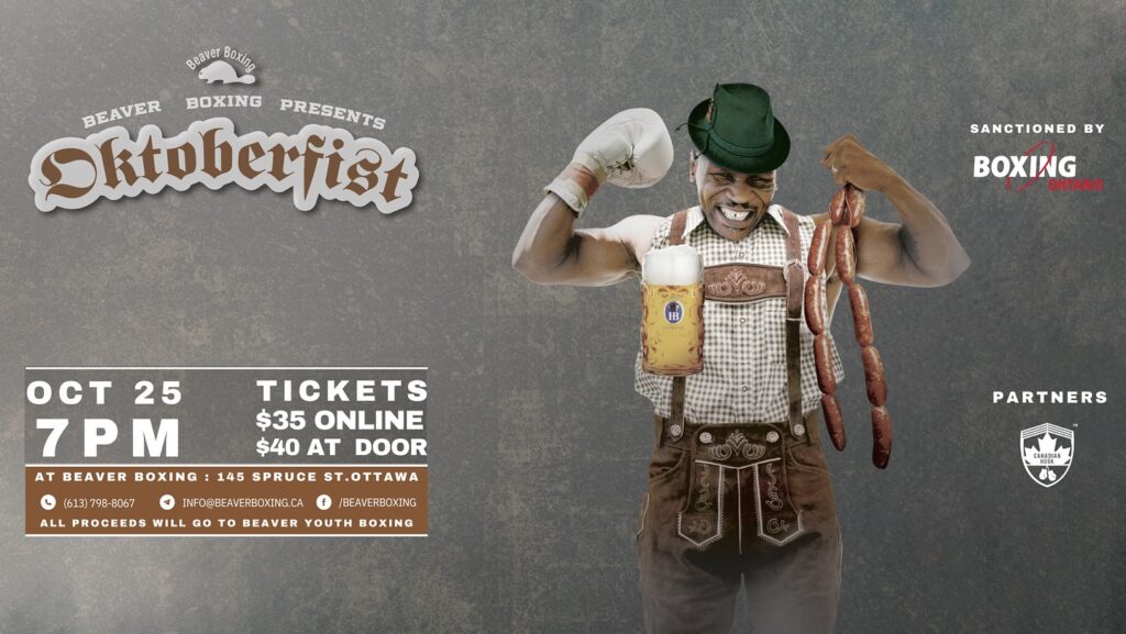 This is a boxing event sanctioned by Boxing Ontario. This contest is sanctioned by an organization officially recognized by the Province of Ontario.
