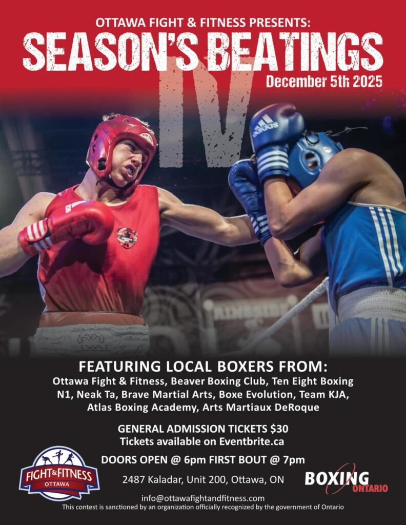 This is a boxing event sanctioned by Boxing Ontario. This contest is sanctioned by an organization officially recognized by the Province of Ontario.